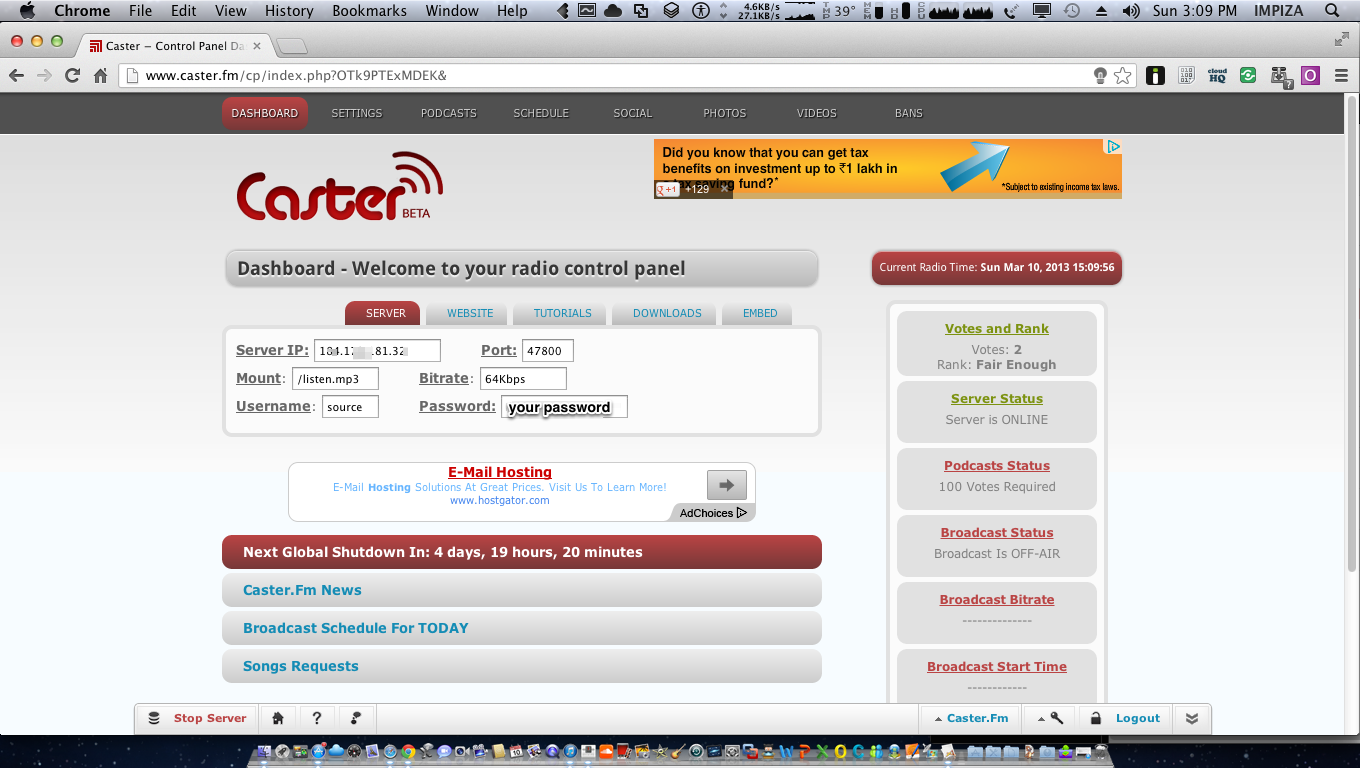 then go to drashboard > server tab > then click on START YOUR RADIO SERVER